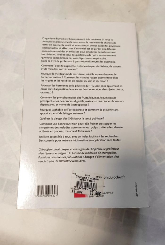 Livre Changez d'alimentation Des conseils pour votre alimentation, par le professeur Henri joyeux, chirurgien cancérologue. Valeur 22,80€ (quelques passages surlignés voir photos) mais sinon parfait état