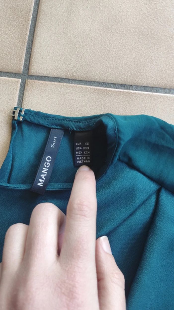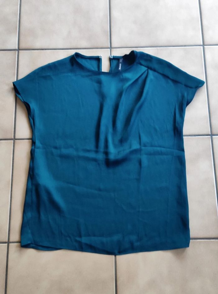 Joli haut Mango fluide et léger, couleur vert satiné Neuf Taille XS