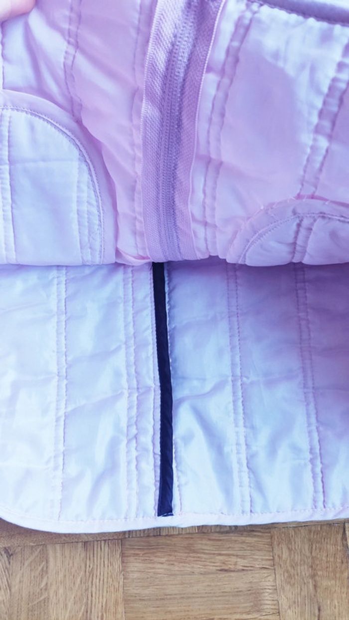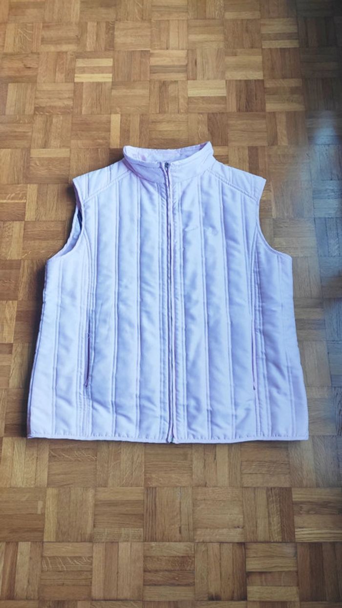 Veste rose claire sans manches, chaude Marque Affinités Taille 4 Hauteur 64cm , aisselles à aiselles 57cm Taille et hanches idem 57cm