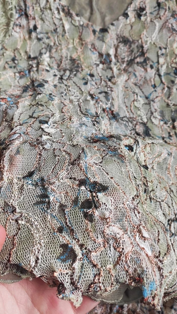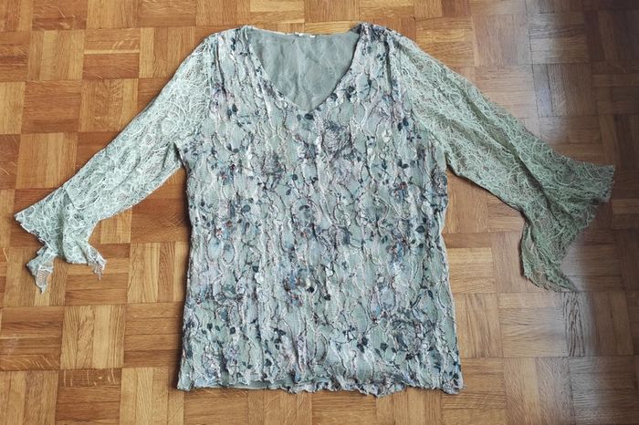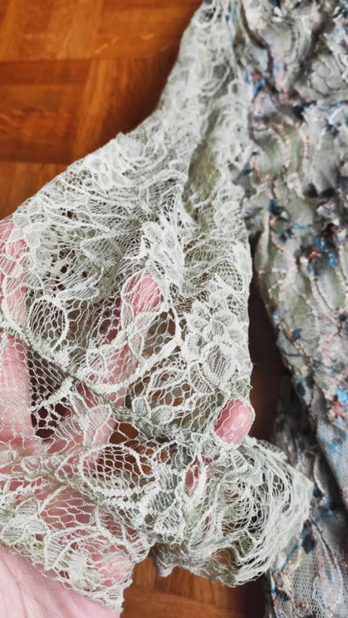 Superbe haut dentelles bleu et beige Marque de qualité mais nous avons découpé l'étiquette 😅 manches originales