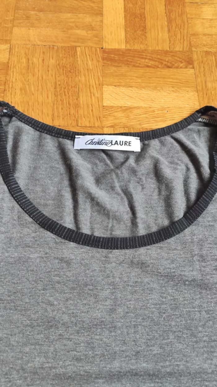 T-shirt femme gris et noir avec bande Manches longues, marque de qualité Christine Laure Taille 46/48