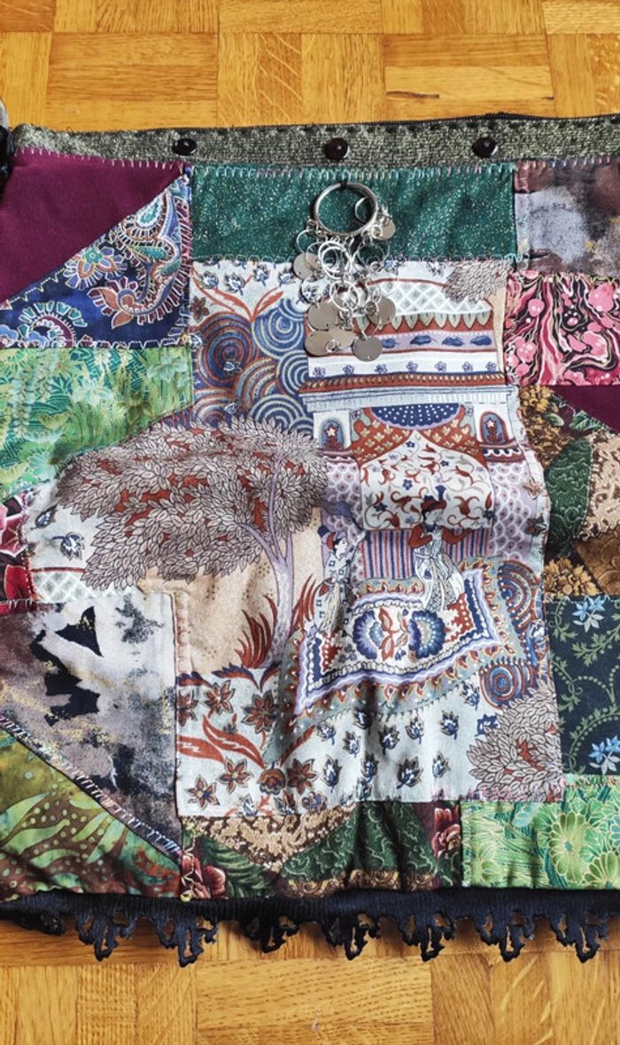 Petit sac à bandoulière style patchwork, bohème, ethnique. Model unique, 2 faces différentes. 38x40cm