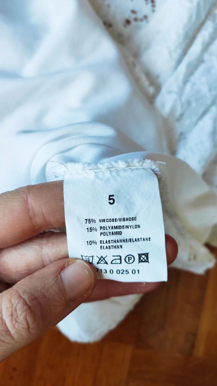 T-shirt blanc avec dentelles ajourées, avec dessous blanc opaque Col en V Aisselles à aisselles 53 cm Elastique se tend Hauteur 59 cm