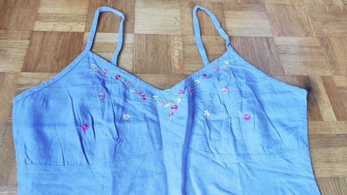 Très jolie robe avec broderies de fleurs Taille XL, coton et lin. Belle qualité