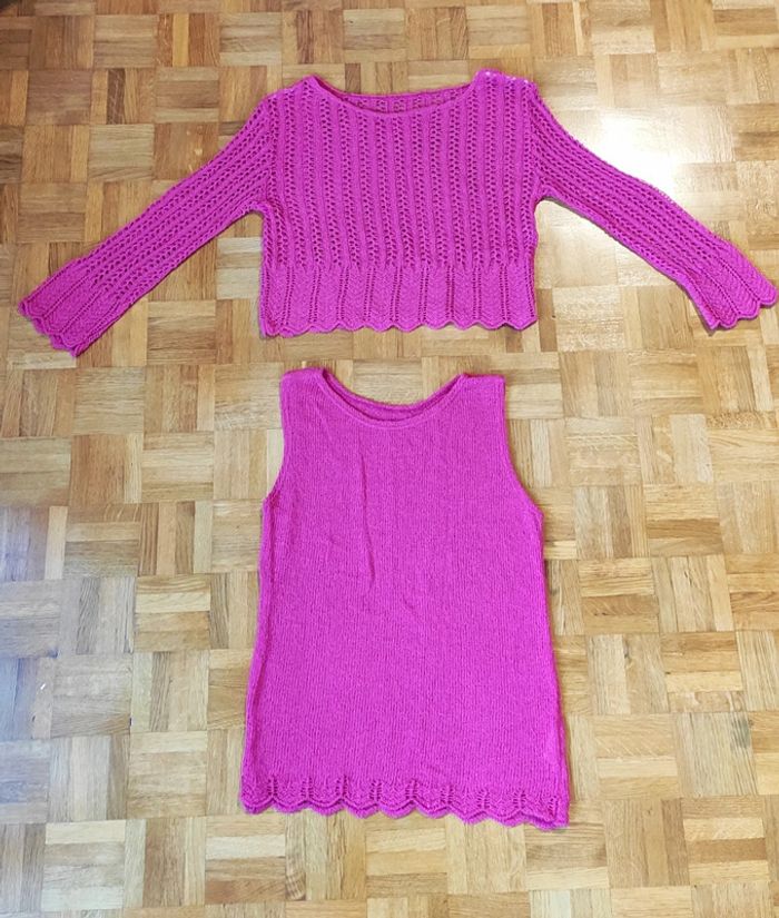 Magnifique pull deux éléments Couleur rose fushia avec ouvertures Original