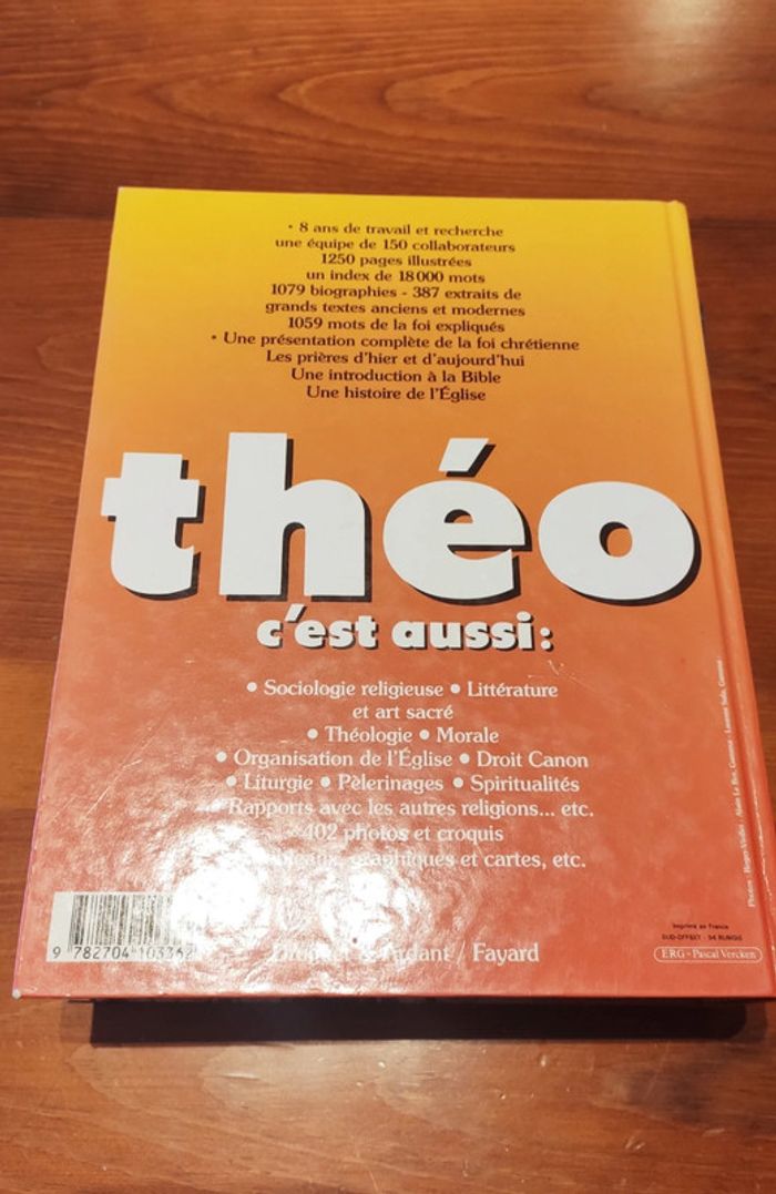 Gros livre épais Théo, encyclopédie catholique. Recherche de Dieu, patrimoine judéo-chrétien, vie et foi de l'église... Parfait état, juste 1ere page découpée proprement (voir photo)