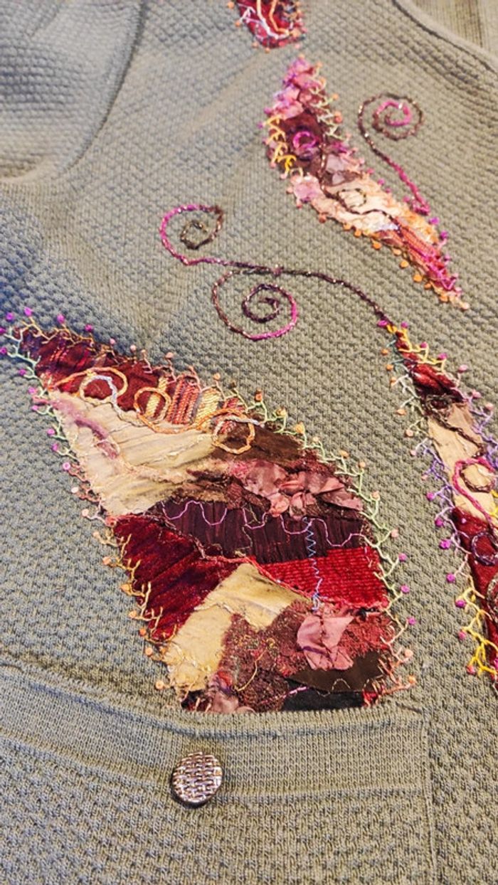 Joli gilet 30% laine, 70% acrylique Customisé façon patchwork Original et unique Taille 44-46