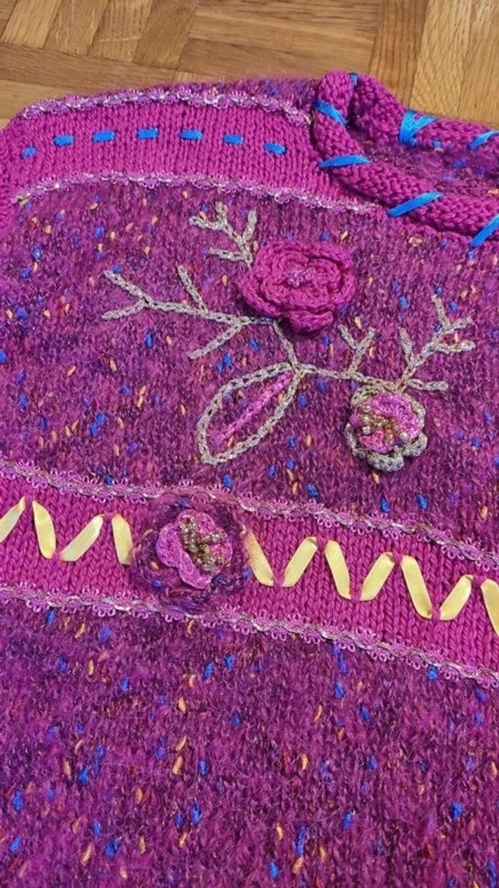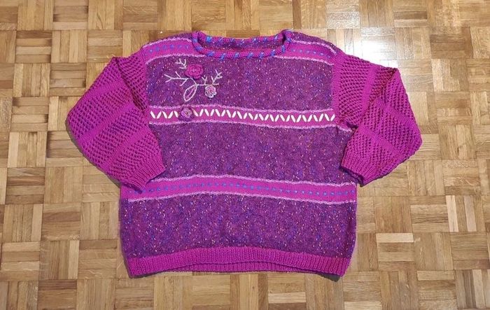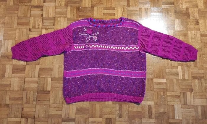 Joli pull fait main avec petites fleurs Model unique et original Peu porté, manches aérées Épaule à épaule 54cm Hauteur 67cm Largeur 63cm Longueur des manches 63cm