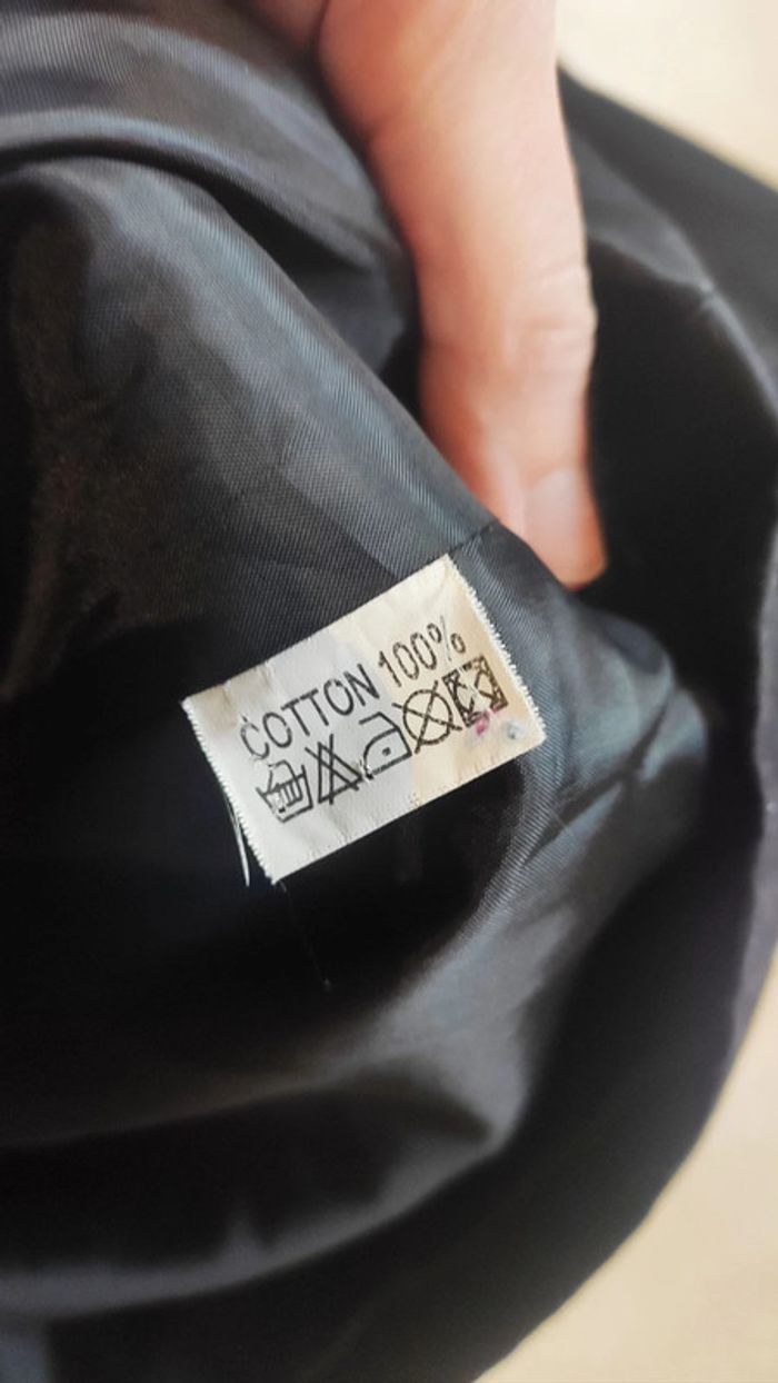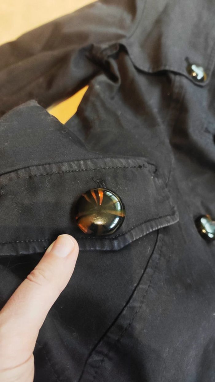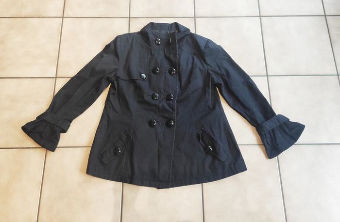Joli manteau noir avec boutons (un est abîmé voir photo), sinon parfait état 100% coton extérieur Taille 42