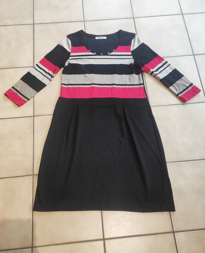 Jolie robe légère et confortable à manches longues, et rayures Marque Christine Laure Taille 3, neuve Longueur 100cm