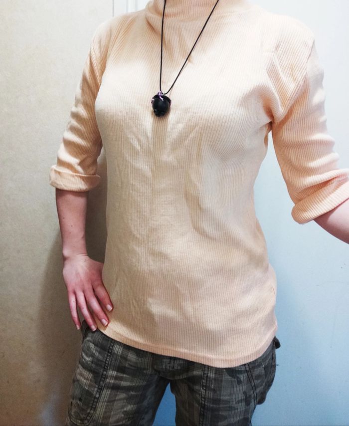 Petit haut abricot manches 3/4 retroussées Taille L