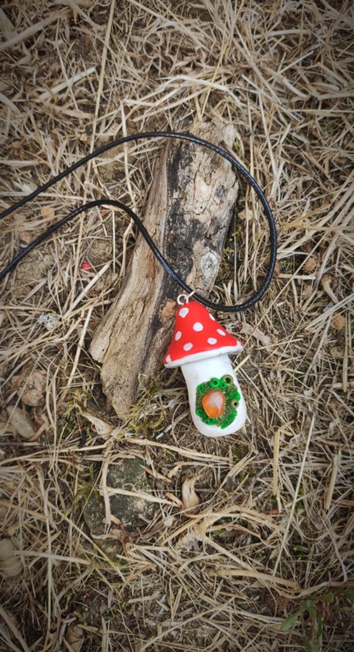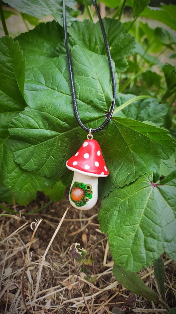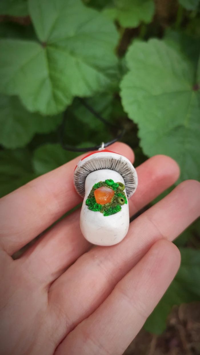 Pendentif champignon magique 🍄 avec sa pierre de cornaline et sa mousse de la forêt. Model unique. Vertus de la cornaline: soulage les douleurs liées aux menstruations apaise les sentiments de rancune facilite le drainage de l’organisme protège les lieux et les personnes atténue les souffrances articulaires apporte courage et assurance accompagne la bonne cicatrisation des plaies #pierresemiprecieuse , #pierresnaturelles , #pierreprecieuse , #cornaline , #champignon , #foret , #mousse , #nature , #fimo , #enchanted , #féerique , #ethnique