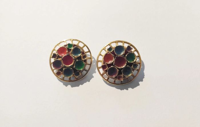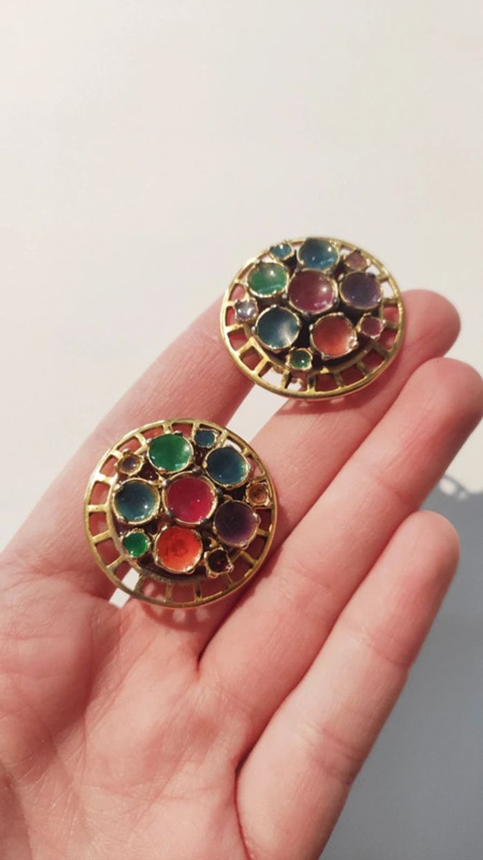 Magnifiques boucles d'oreilles clips Multicolores et dorées, vintage