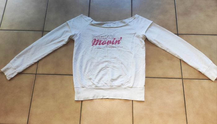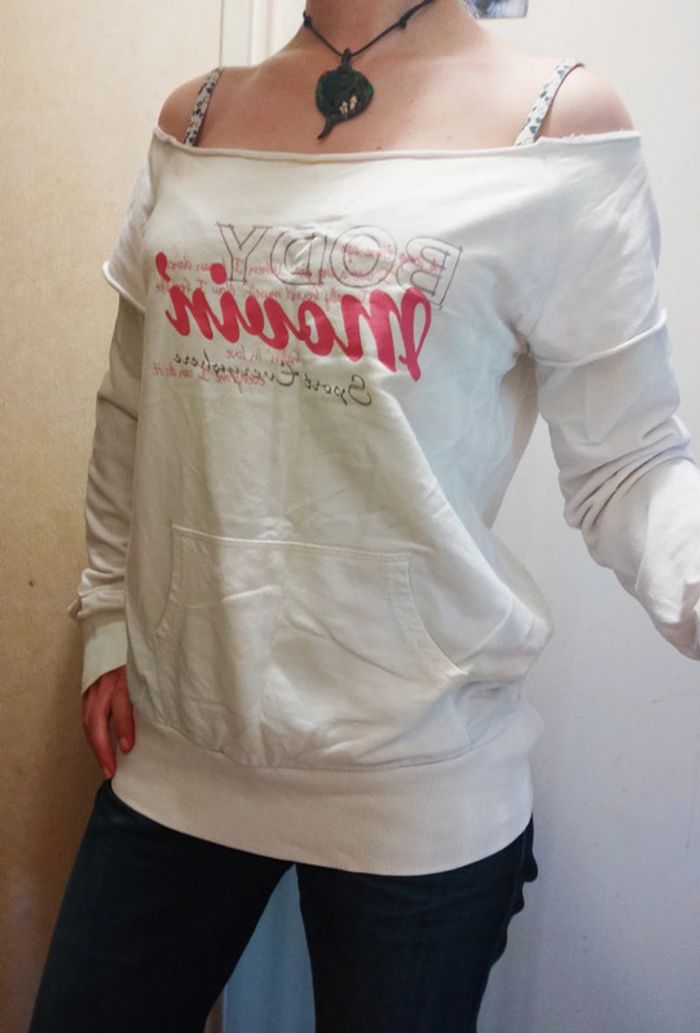 Joli haut manches longues épaules dénudées Se porte loose, effet décontracté. 100% coton, Taille M