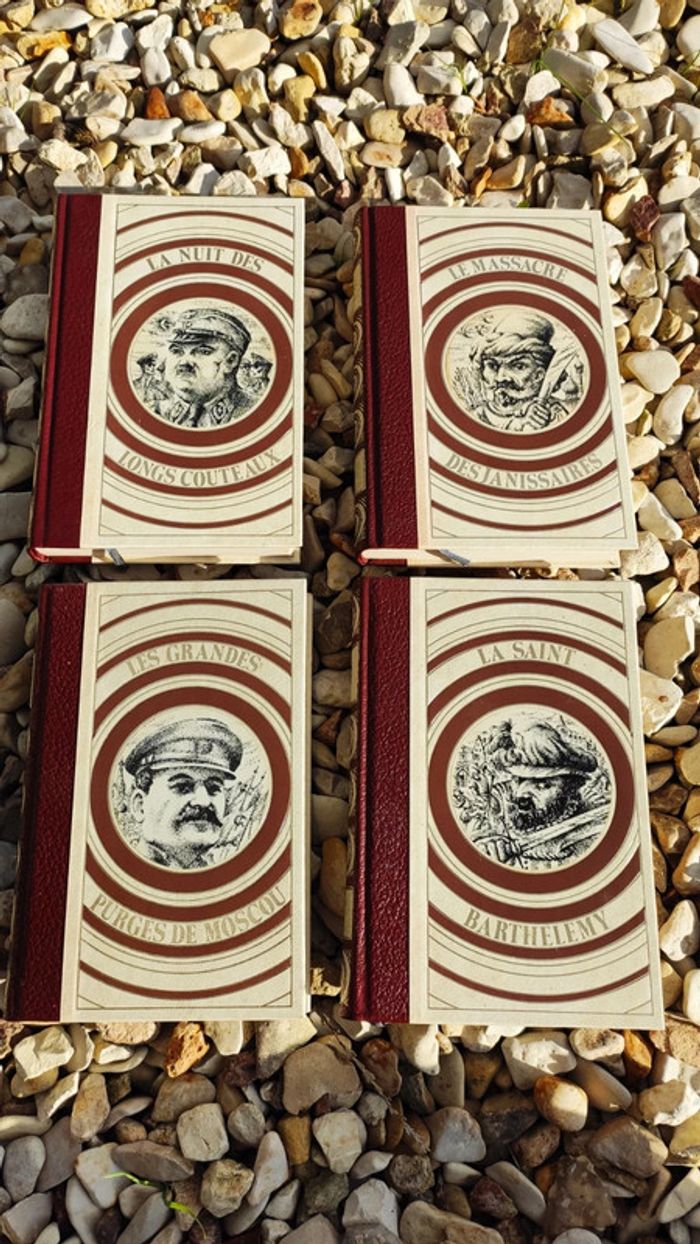4 livres historiques: –le massacre des janissaires –la nuit des longs couteaux –la Saint-Barthélemy –les grandes purges de Moscou 15€ le lot 15 euros Le lot Envoi possible