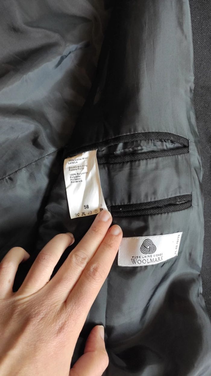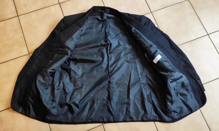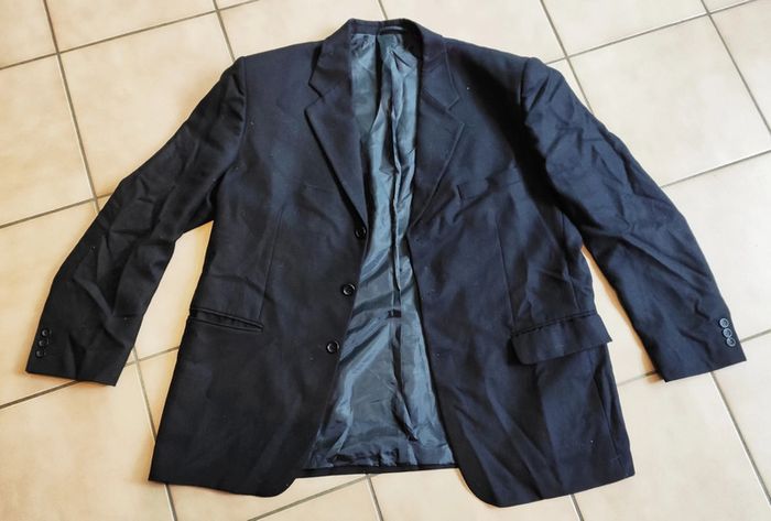 Jolie veste de costume chic et élégante, noire laine vierge. Taille 58, longueur 84cm. Épaule à épaule 58cm. Parfait état