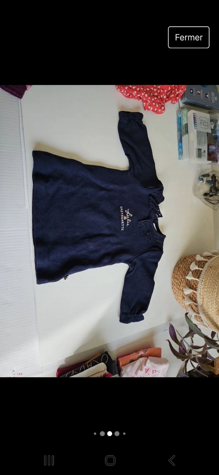 Tee shirt : - le rose foncé : orchestra - le rose clair : mots d enfant - le saumon : tape a l œil Tee shrirt manches longues : - photo 4 : kiabi - photo 5 : orchestra Robes : - photo 6 : lulu castagnette - photo 7 : prémaman Combishort (photo 8) : kiabi Sous pull (photo 9) : kiabi Dernière photo : tee shirt offert de chez kiabi Maison non fumeur 13 articles dans le lot 1 euros l article 10 euros le lot #lot9moisfille #lotteeshirt9moisfille #teeshirt9moisfille #robes9moisfille #teeshirtmancheslongues9moisfille