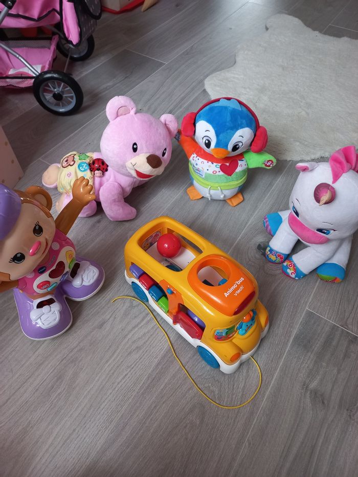 Vends lot de 5 jouets éducatif comprenant : titi ouistiti, animo bus, licorne magique parlante, le pingouin danseur et petit ours apprend à marcher. Le tout en parfait état voir neuf. Le lot 20 euros