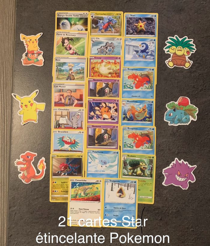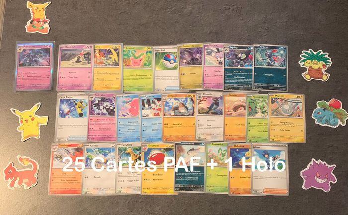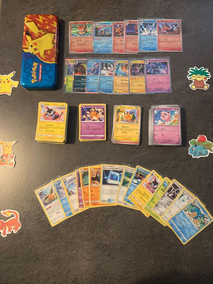 Gros lots de carte Pokémon comprenants : -35 cartes vieille série ‼️🚨 Plusieurs séries Mélangées / Très bon état ou Bon états. -7 Holo série Force temporelle -21 cartes Star Étincelantes -25 cartes EV PAF + 1 Holo -80 cartes EV PAL + 7 Holo -90 cartes Zénith suprême 244 cartes au total en très bon état ou Sortie de Booster. + 1 boîtes en cadeau Offertes et stickers (aléatoire). Envoie rapide et soigner.
