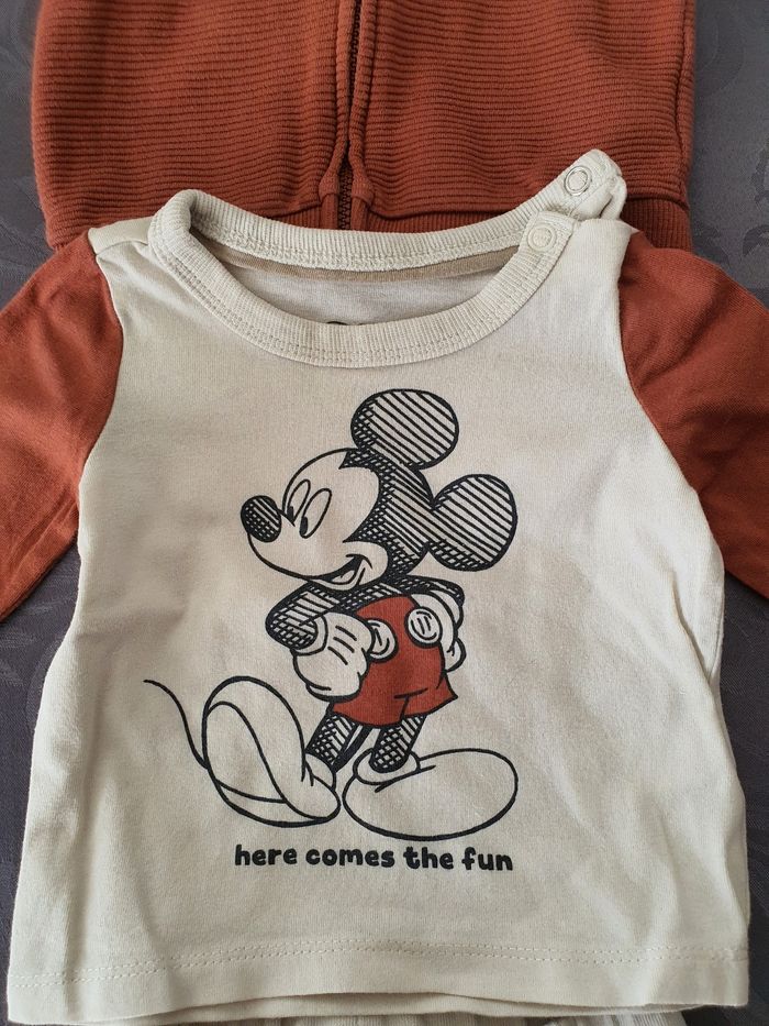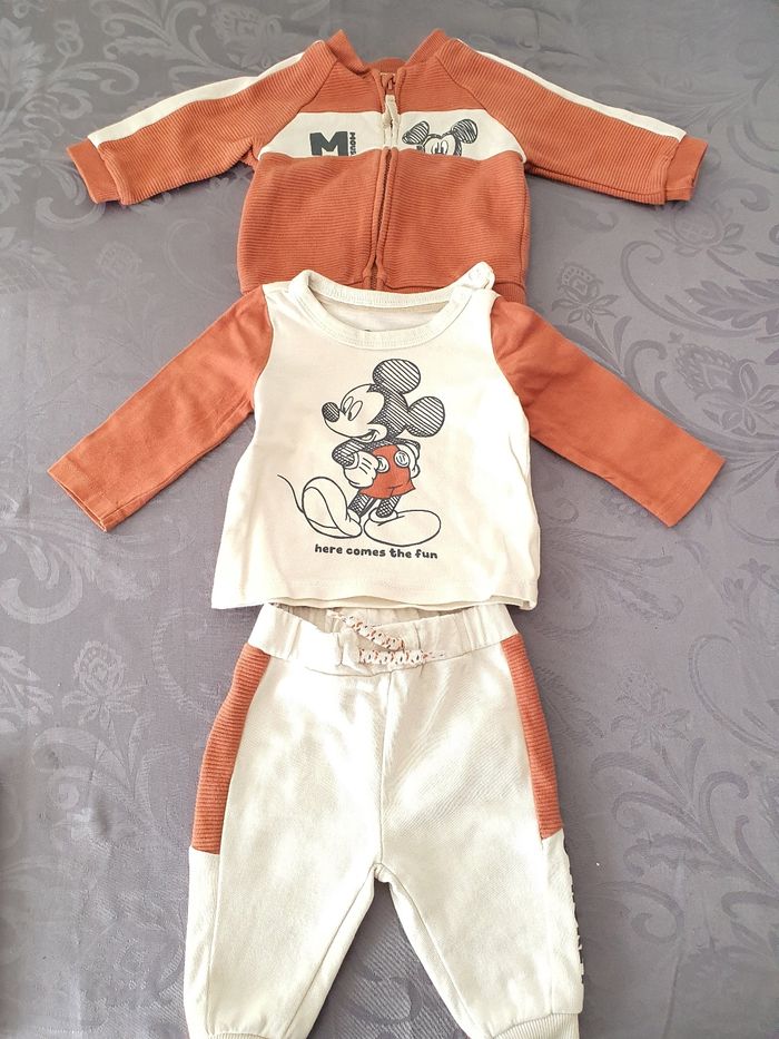 Ensemble Disney. Comprenant 1 tee-shirt manches longues, 1 pantalon et 1 veste zippée Taille 3mois Très bon état