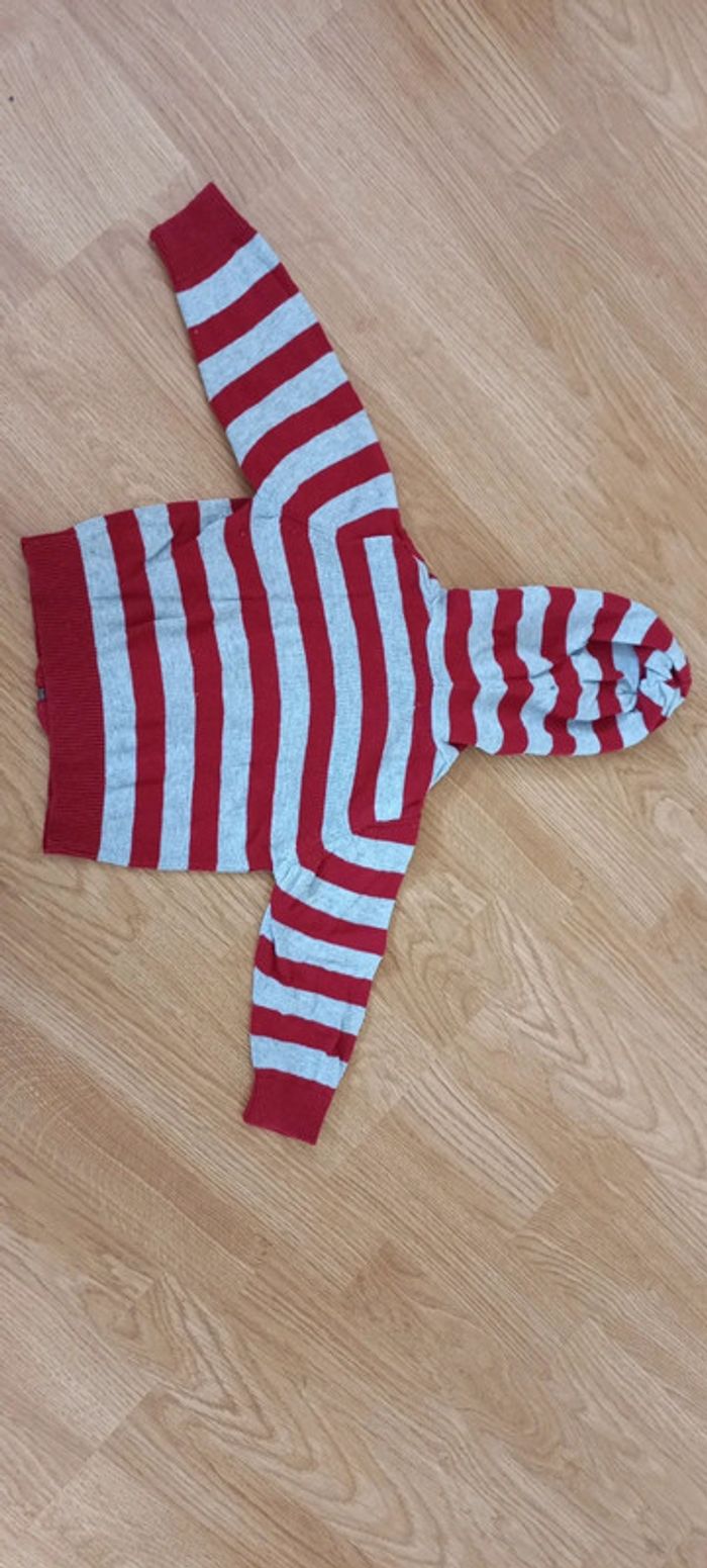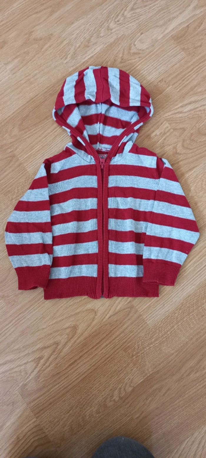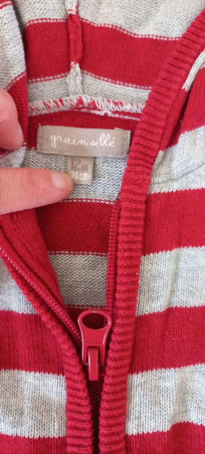 Gilet zippé avec capuche à rayure rouge et gris Taille 12 mois Marque Grain de blé #nanadoucik_garçon12mois
