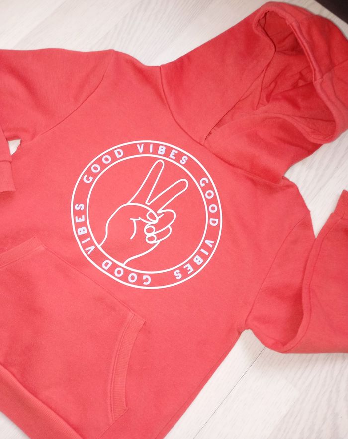 Sweat à capuche rouge orangé Marque : Primark T. 6-7 ans Bon état général, présence de mini bouloches et d'une mini tâche (voir dernière photo)