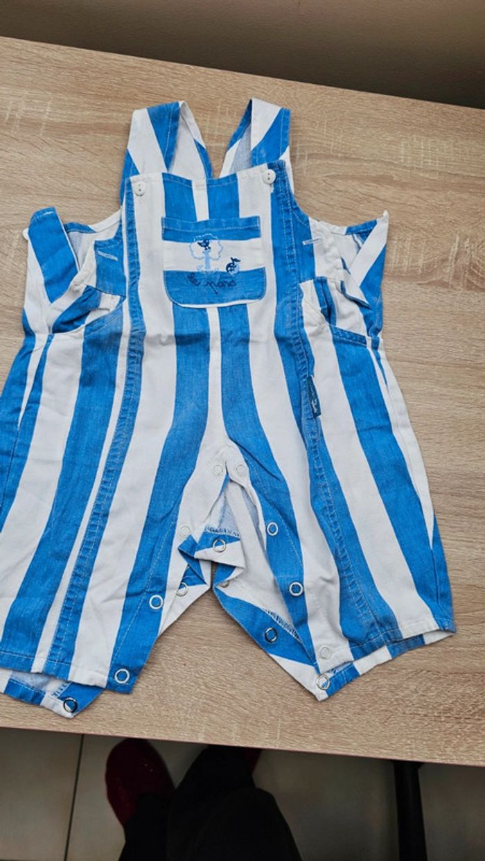 Salopette à rayures bleu ciel et blanc 6 mois - photo numéro 1
