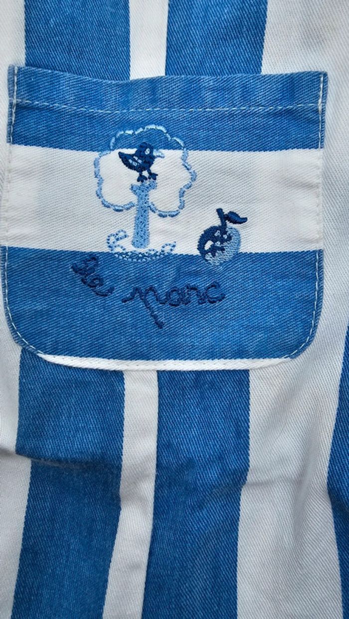 Jolie Salopette à rayures bleu ciel et blanc 6 mois Fermeture en bas par boutons pressions Motif décoratif sur la poche devant 'Le Parc' Très Bon État