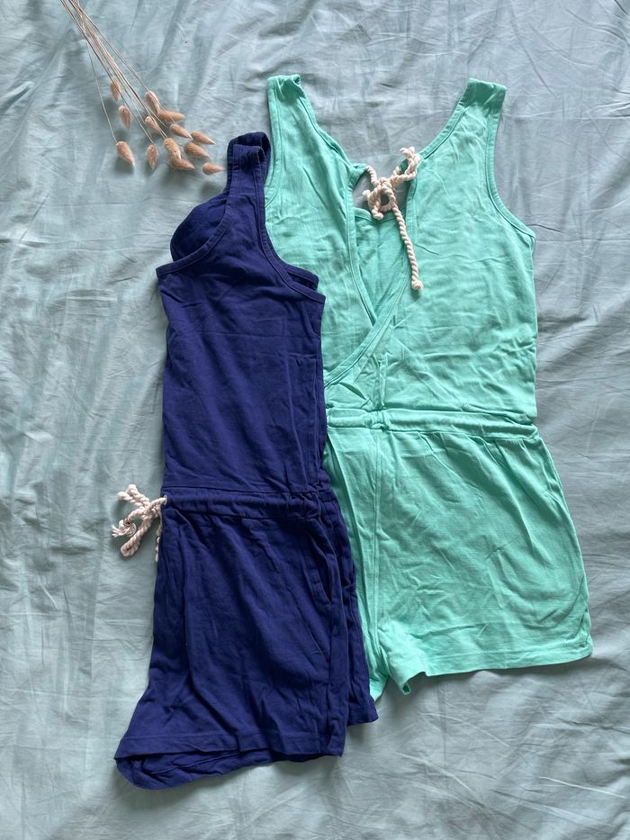 💬 2 Combi-shorts bleu marine et bleu/vert d’eau coton élastique. 2 poches. Possibilité de resserrer à la taille. Idéal pour la plage. Chacune des Combis a été porté 1 fois. 🛍️ Marque Primark 📏 Taille S 🧺 Lavées puis stockées dans une armoire en attendant son nouveau propriétaire.