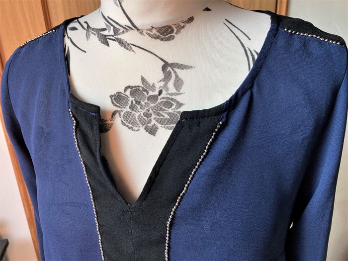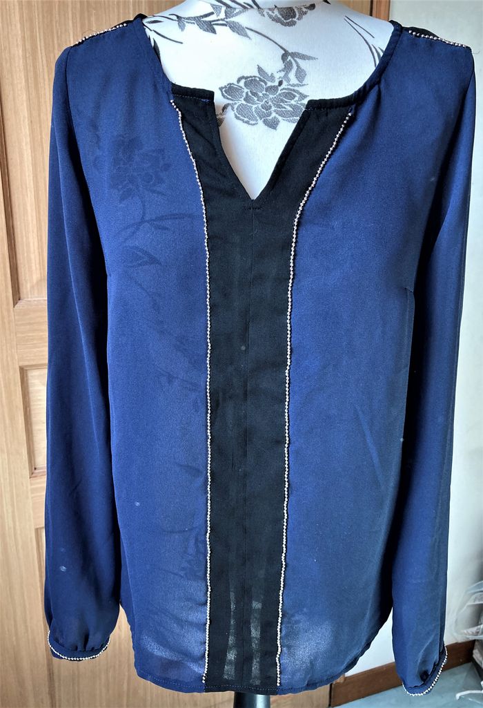 Blouse fluide marine et noire liséré perlé taille 36-38 - photo numéro 1