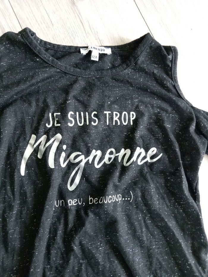 Tee shirt épaules dénudées 12 ans avec écritures sur le devant