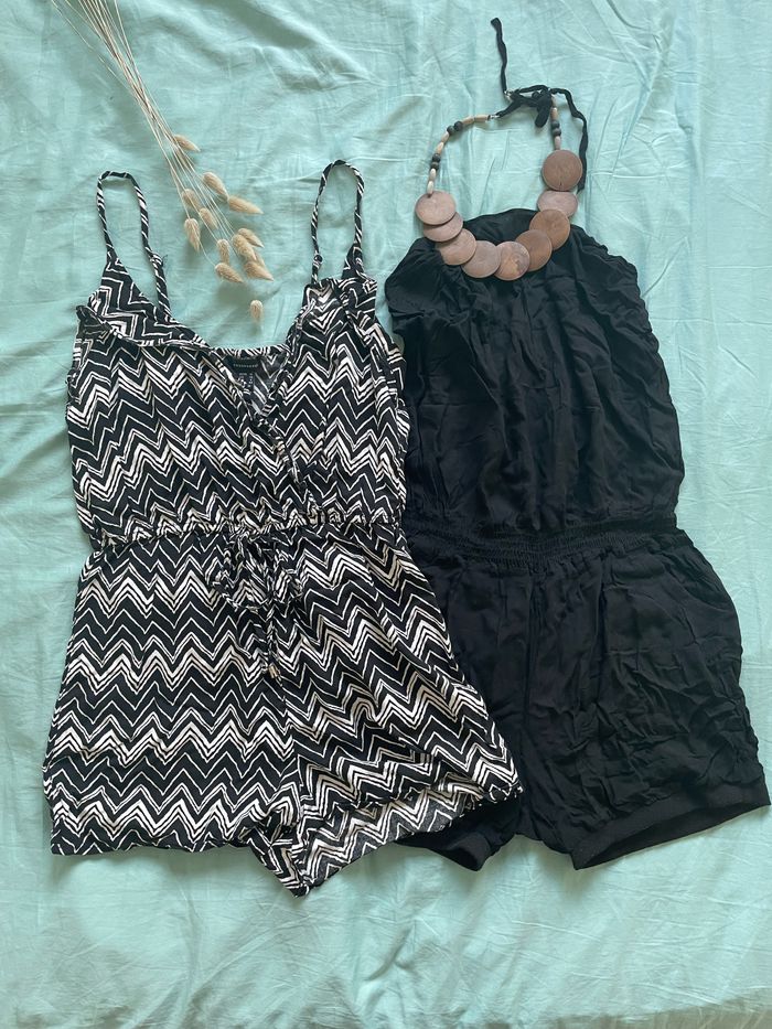 💬 2 Combi-shorts noires légères. Idéal pour la plage. État satisfaisant (plus de vernis sur le bois et embout métallique manquant sur un cordon, voir photos). 🛍️ Marque Primark et inconnu 📏 Taille 40 et taille unique 🧺 Lavées puis stockées dans une armoire en attendant son nouveau propriétaire.
