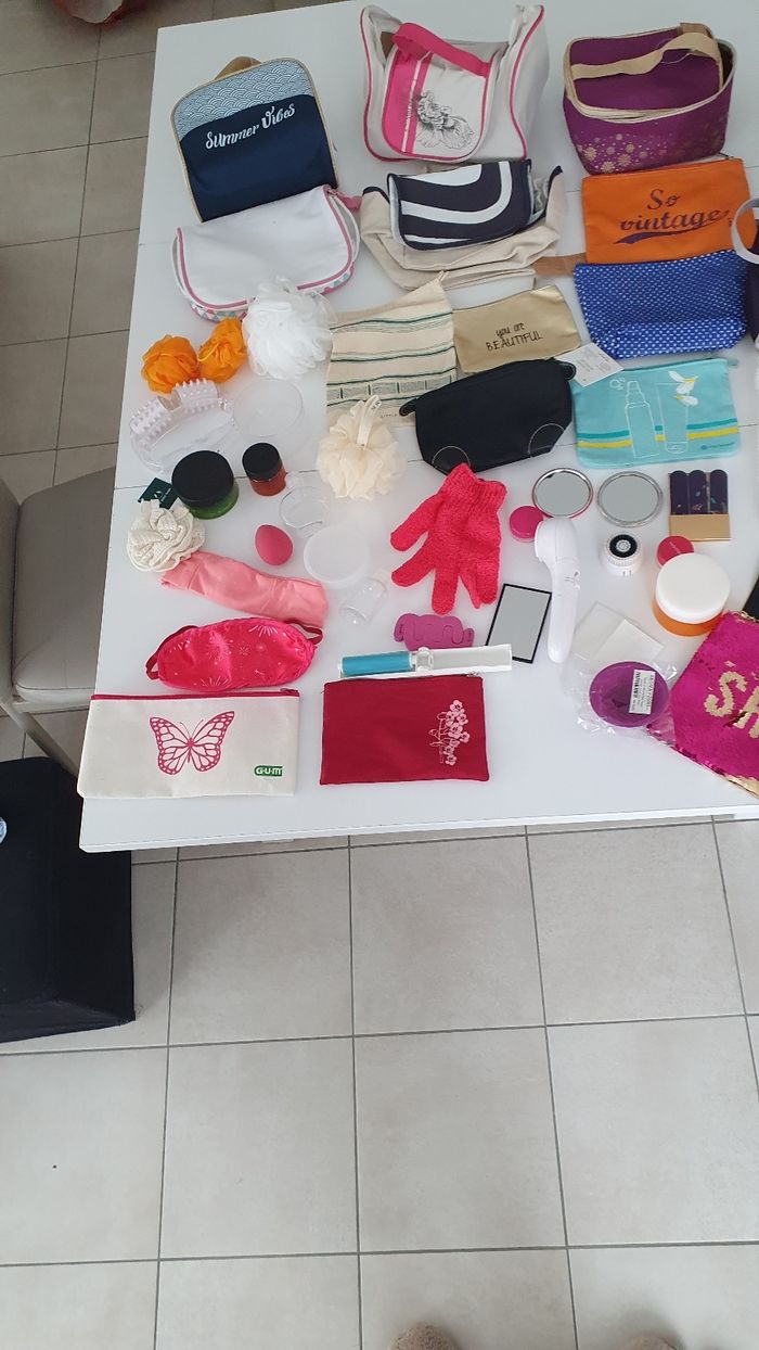 Loup pour dormir Bandeau Trousse Pot vide Fleur de douche Eponge pour maquillage Miroir Limes à ongles ... Possibilité de séparer le lot