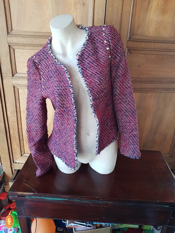 Avec des détails cloutés aux poignets et épaules. Etiquette de consigne lavage absente mais lavée en programme laine. En très bon état ! Ideal pour l'automne avec un jean par exemple 😉 #vestefemme #automne
