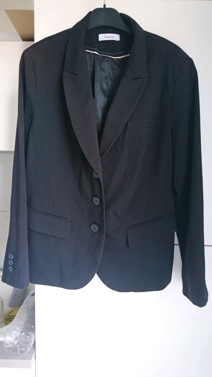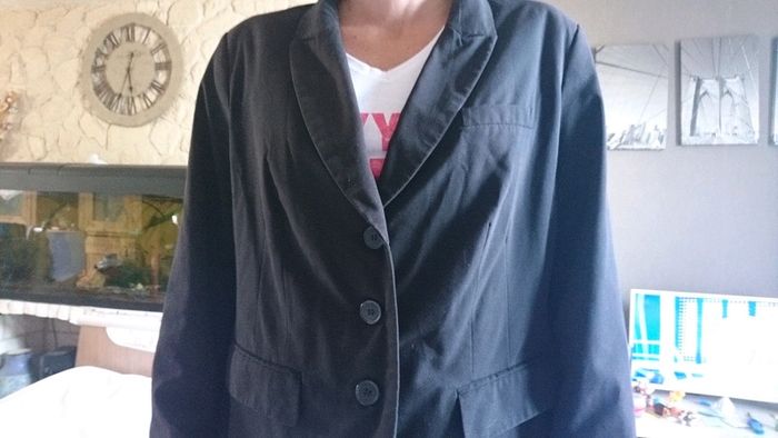 Jolie veste de tailleur noire. Pas d étiquette de taille mais Je dirais taille 42. Je met en général du 38. De marque C&A En très bon état. #amandin62femme42