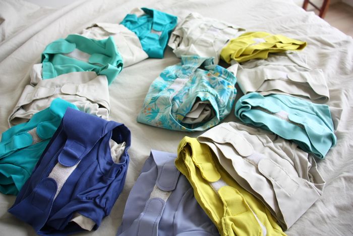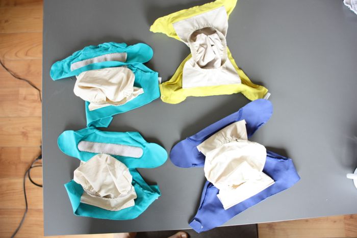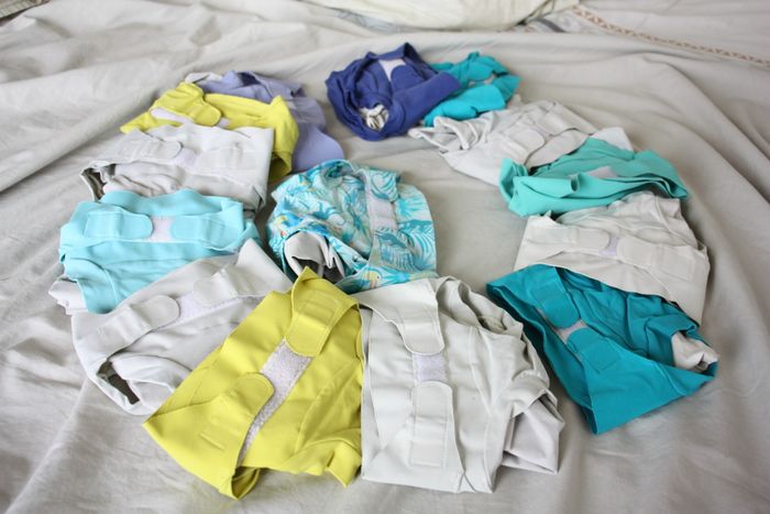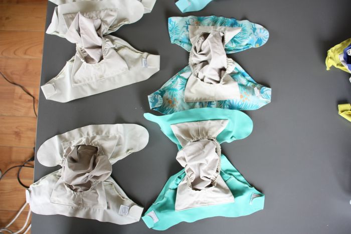 Lot de 13 couches lavables de la marque Hamac taille S (3 à 7kg). Utilisé pour deux enfants, très bon état, elles n'ont servi que les 3 premiers mois. Je vends le lot complet (pas de délotage) Routine de lavage utilisée : 30-40°C, Essorage 800tours, lessive compatible. -13 couches de différentes couleurs (beige, jaune, bleu, ...) -10 couches en très bon état et 3 couches qui se dédoublent un peu mais qui tout à fait fonctionnelles -Plusieurs inserts hamac taille 1