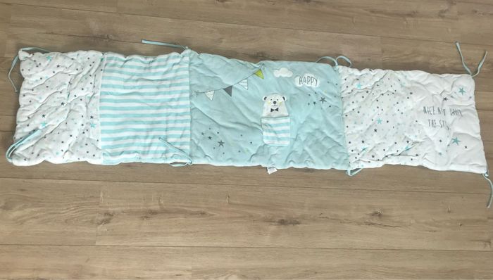 Tour de lit mixte blanc et bleu ciel