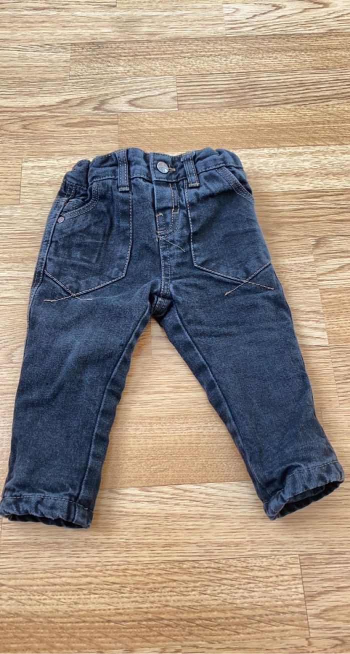 Jeans polaire tout moumouter a l’intérieur il et noir taille 6 mois en très bon état
