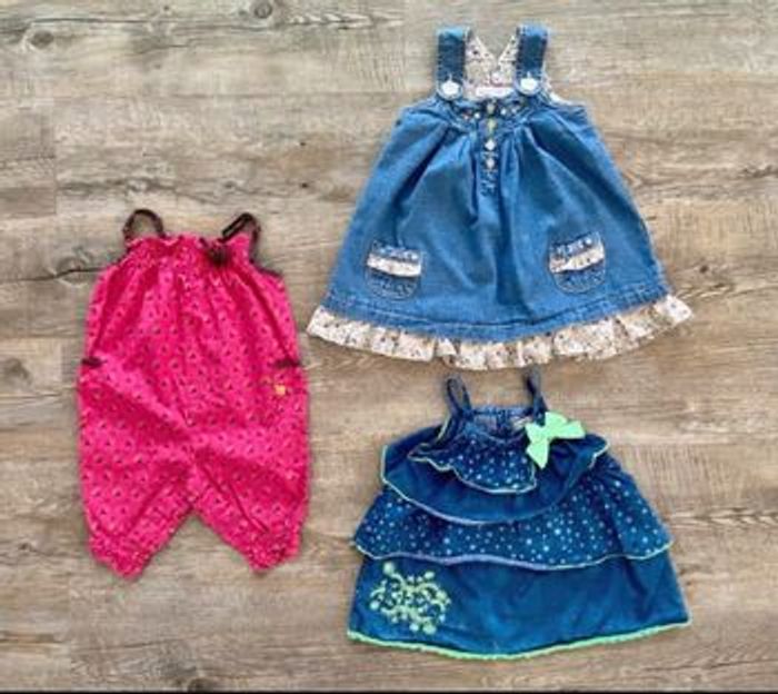 Lot bébé fille été 6 mois plusieurs marques Comprend: 1 robe Prémaman 1 robe Louison Dessolles 1 Combi La Compagnie des Petits Excellent état!