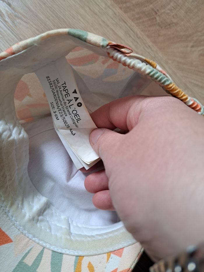 Casquette marque Tape à l'œil, taille indiqué 3-6 mois, ma fille la portée de 6 mois à 9 mois environ