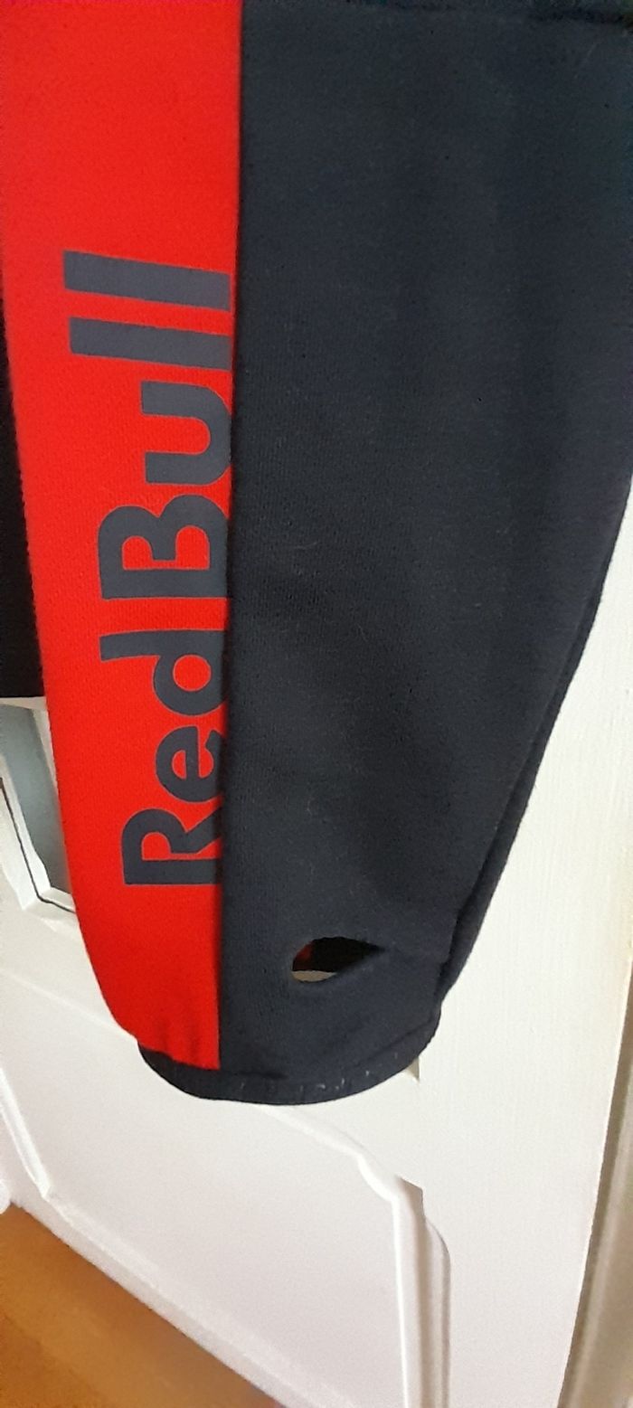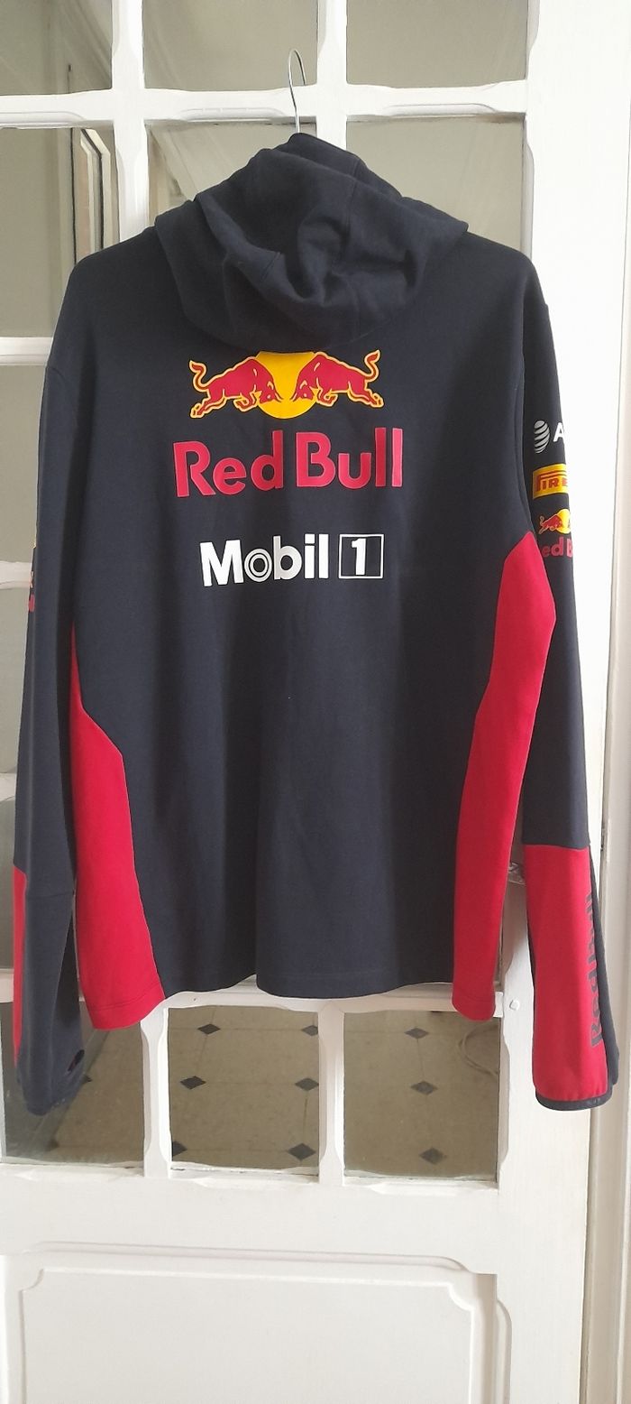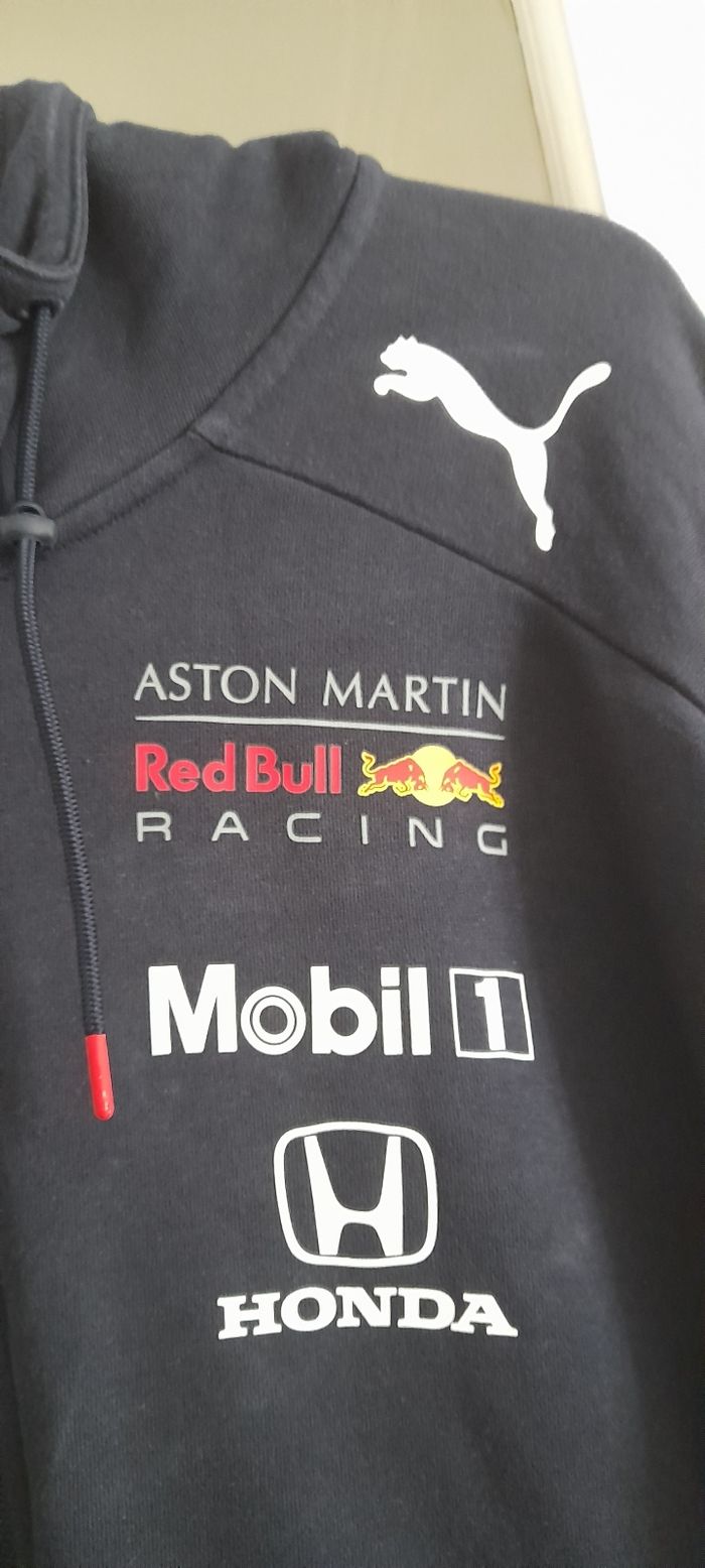 Veste Puma taille XL Couleur noir et rouge avec logos Attache central fermeture éclair 2 poches devant 2 poches intérieure Capuche avec cordon Manches longues avec trou pour doigts 69 % coton et 31 % Polyester Quasi neuf très peu porté