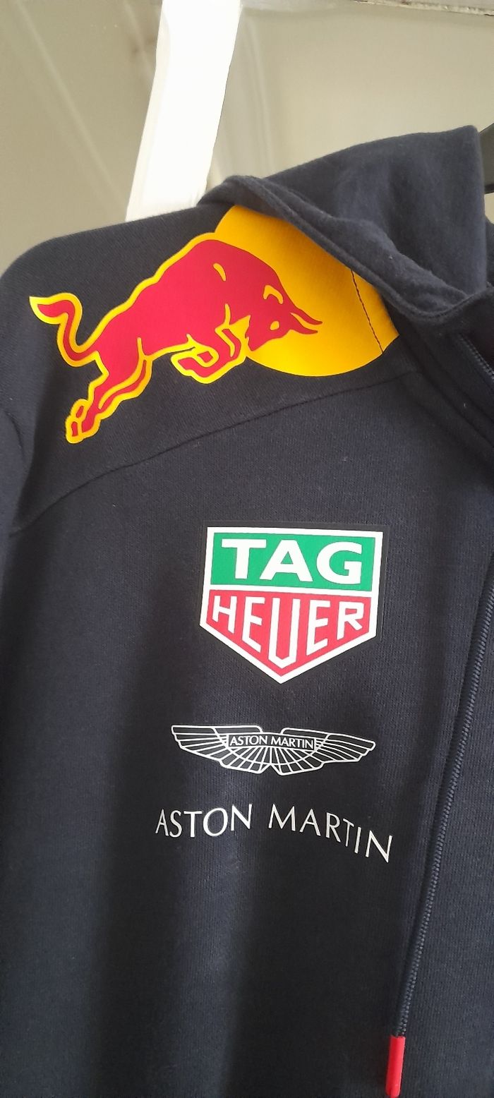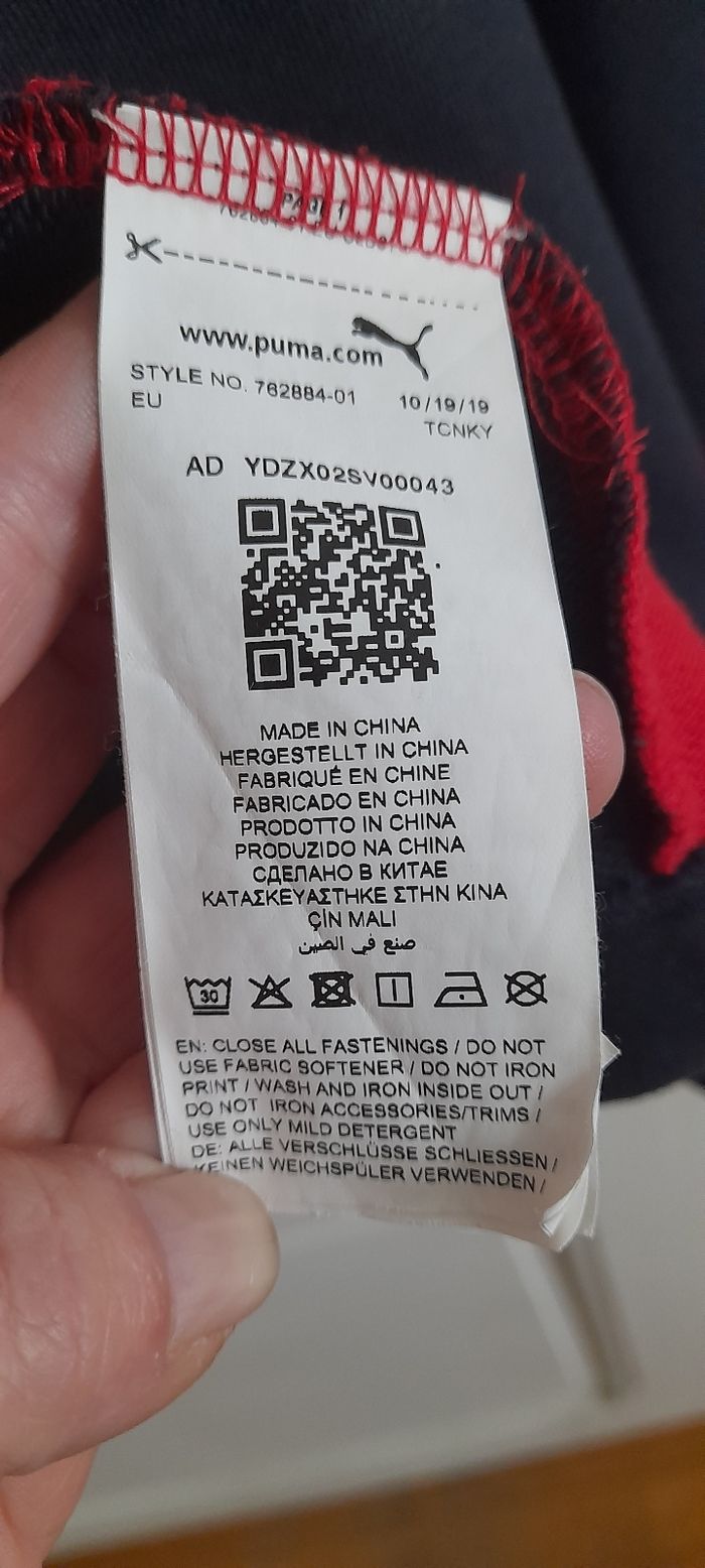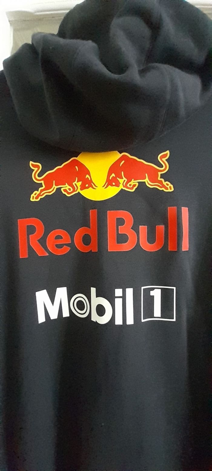 Veste Puma taille XL Couleur noir et rouge avec logos Attache central fermeture éclair 2 poches devant 2 poches intérieure Capuche avec cordon Manches longues avec trou pour doigts 69 % coton et 31 % Polyester Quasi neuf très peu porté