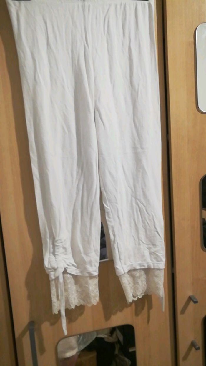 Très jolie leggings mi mollet t.S blanc Bas petite dentelle avec lien de serrage pour le raccourcir un peu Porter 5X maxi #gwennaellescherer36 #gwennaelleschererbas36