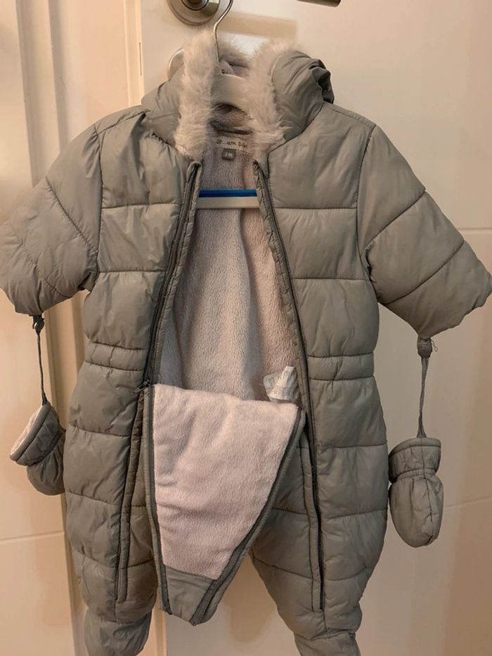 Combinaison 3 mois intérieur en polaire avec moufles s’ouvre par le devant jusqu’aux pieds
