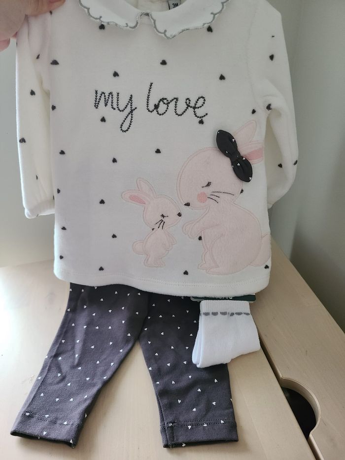 Ensemble Pull legging coeurs et lapin fille 3 mois