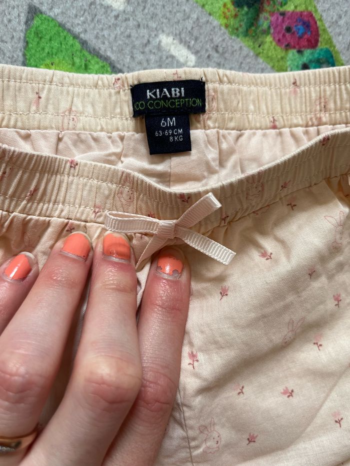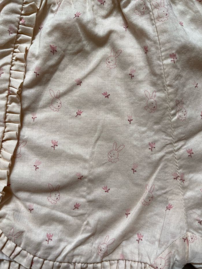 Short fille beige avec petit lapins et fleurs en taille 6 mois . En très bon état très peu porté, de la marque Kiabi