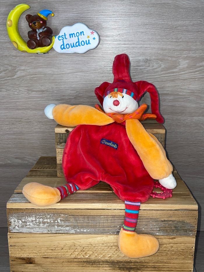 🌺 Bonjour, vendeuse professionnelle 🌺 Je vous propose le Doudou suivant : Marque : MOULIN ROTY Genre : clown Format : plat Coloris : rouge et orange Motifs/Broderies ou plus :anneaux et attache tétine État d’occasion : très bon Stock :1 RÉFÉRENCE : MR225 ➡️ Pour plus de modèles de cette marque, cliquez ici : #moulinroty_cestmondoudou ⭐️ La décoration (boîte...) n'est pas vendu avec le doudou ⭐️