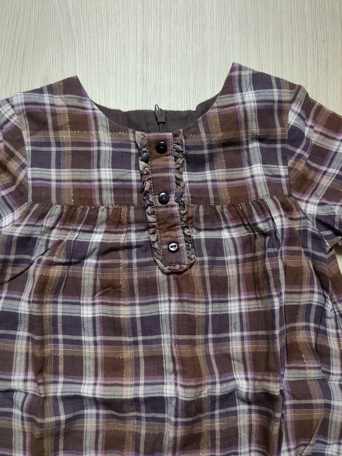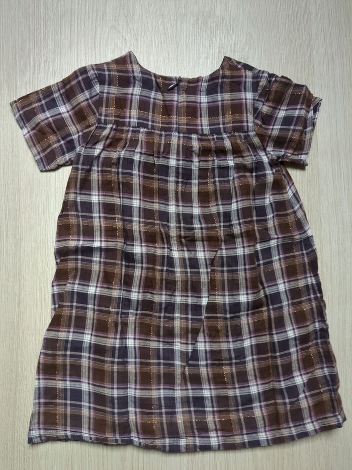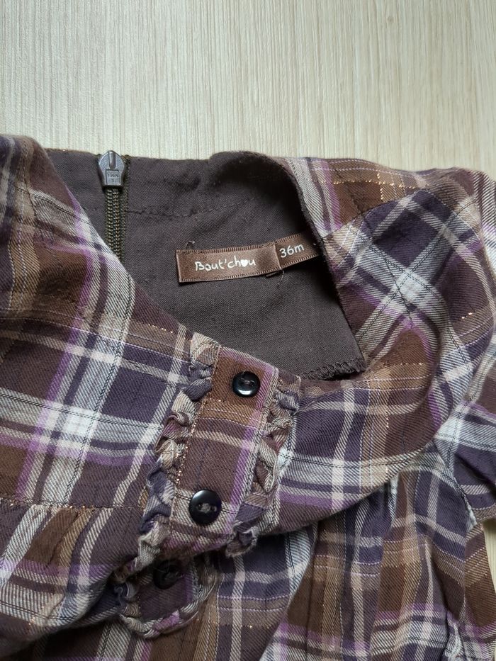 Robe légère à carreaux chocolat violet fils dorés Bout'chou 36 mois - photo numéro 4