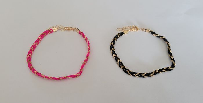 LOT DE 2 CHAINES CHEVILLE TRESSEE NOIRE DOREE + ROSE DOREE ! NEUVE ! - photo numéro 4