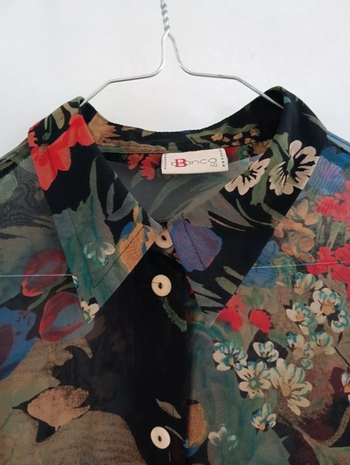 Chemise vintage longue tunique voile multicolore Taille 40 indiquée mais peut convenir à plusieurs tailles selon l'effet souhaité (loose ou ajusté) Mesures Épaules 49cm Aisselles 57cm Longueur 81cm